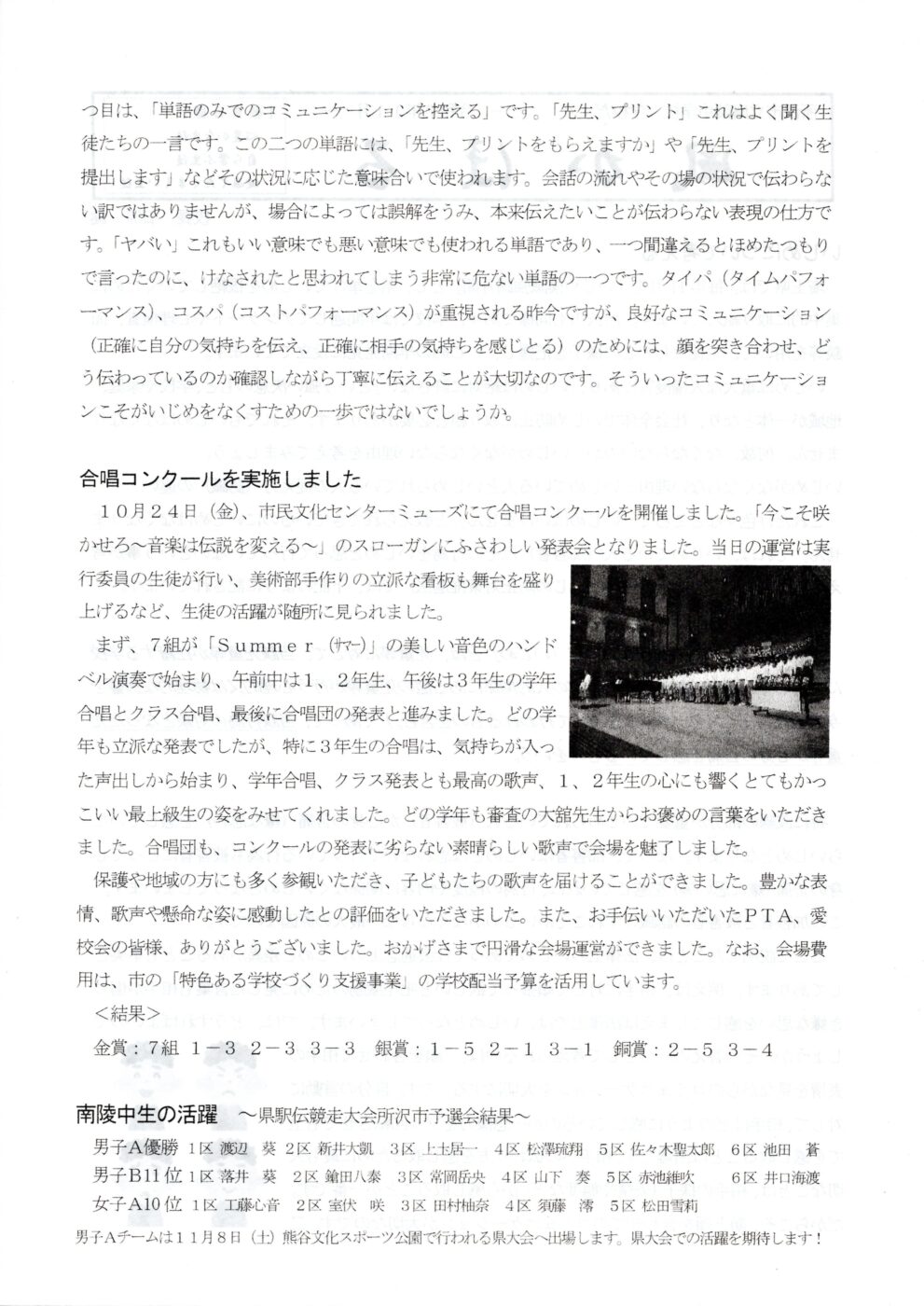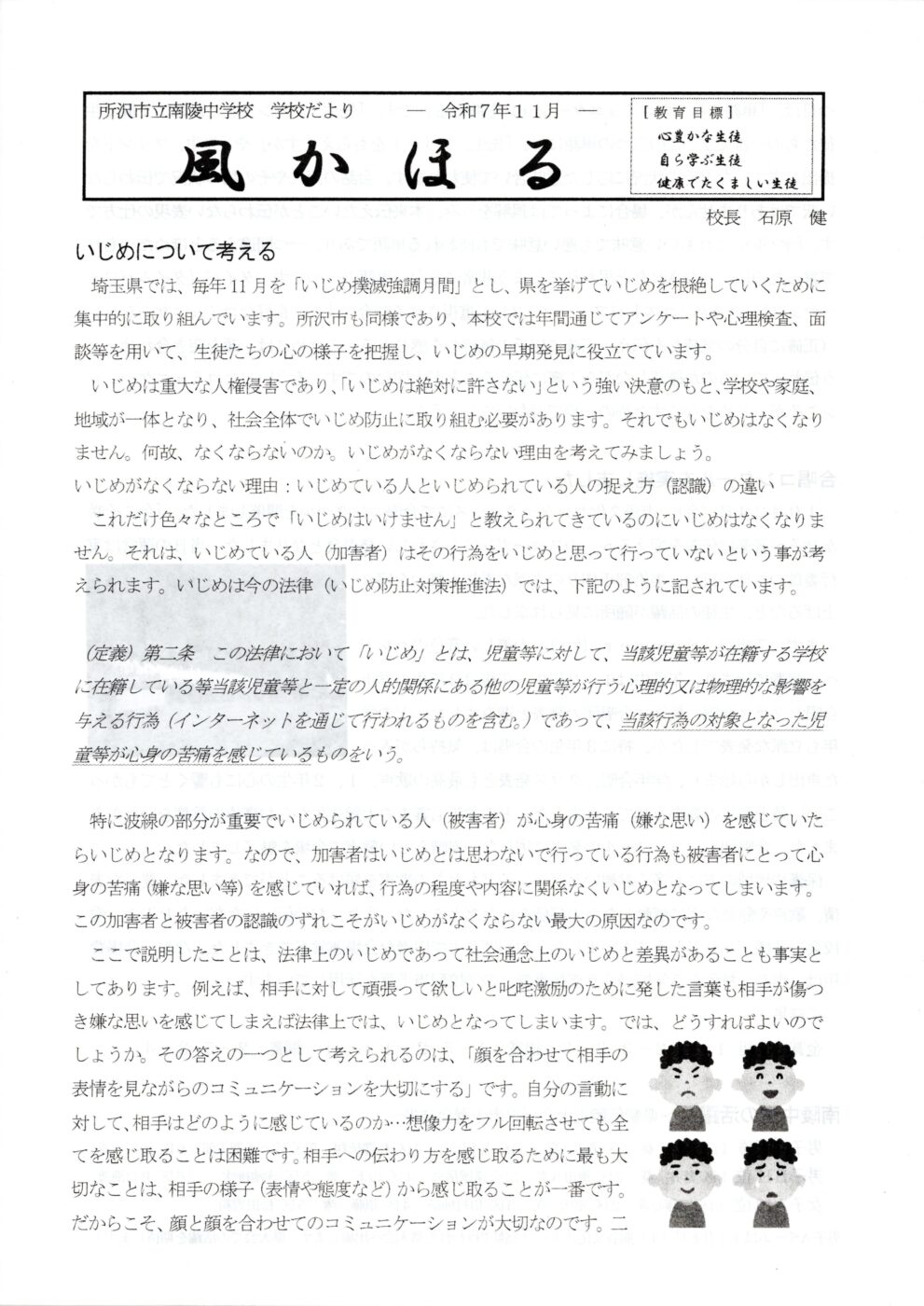 南陵中学校『風かほる』令和7年11月号
