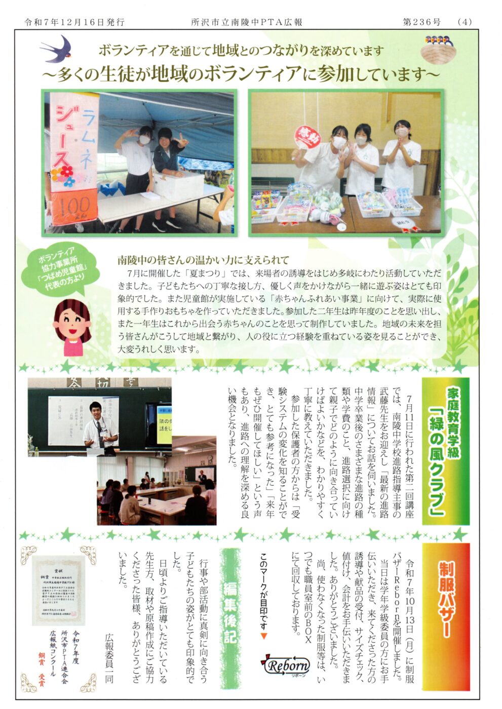南陵中学校PTA 『南陵』令和7年12月16日号