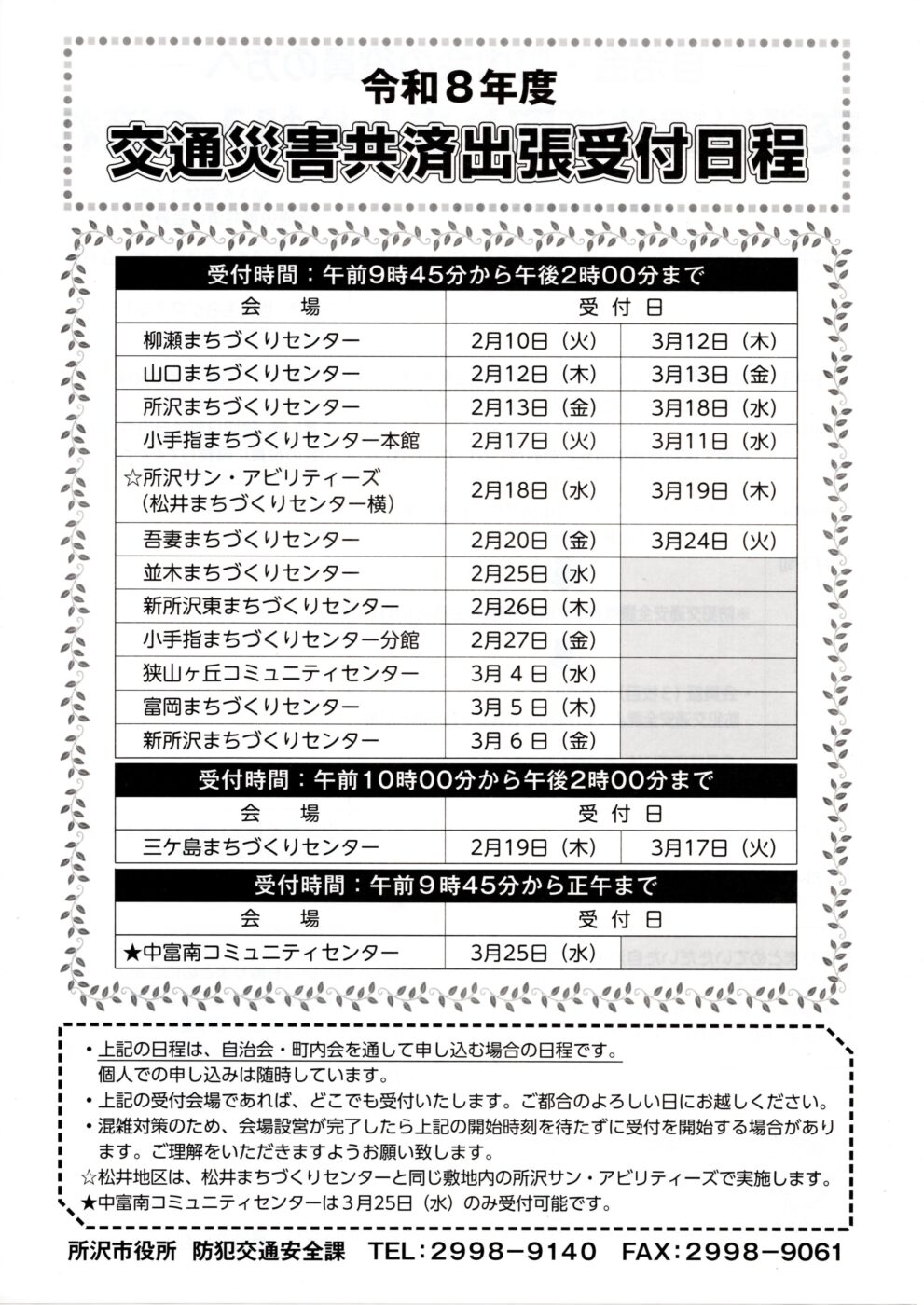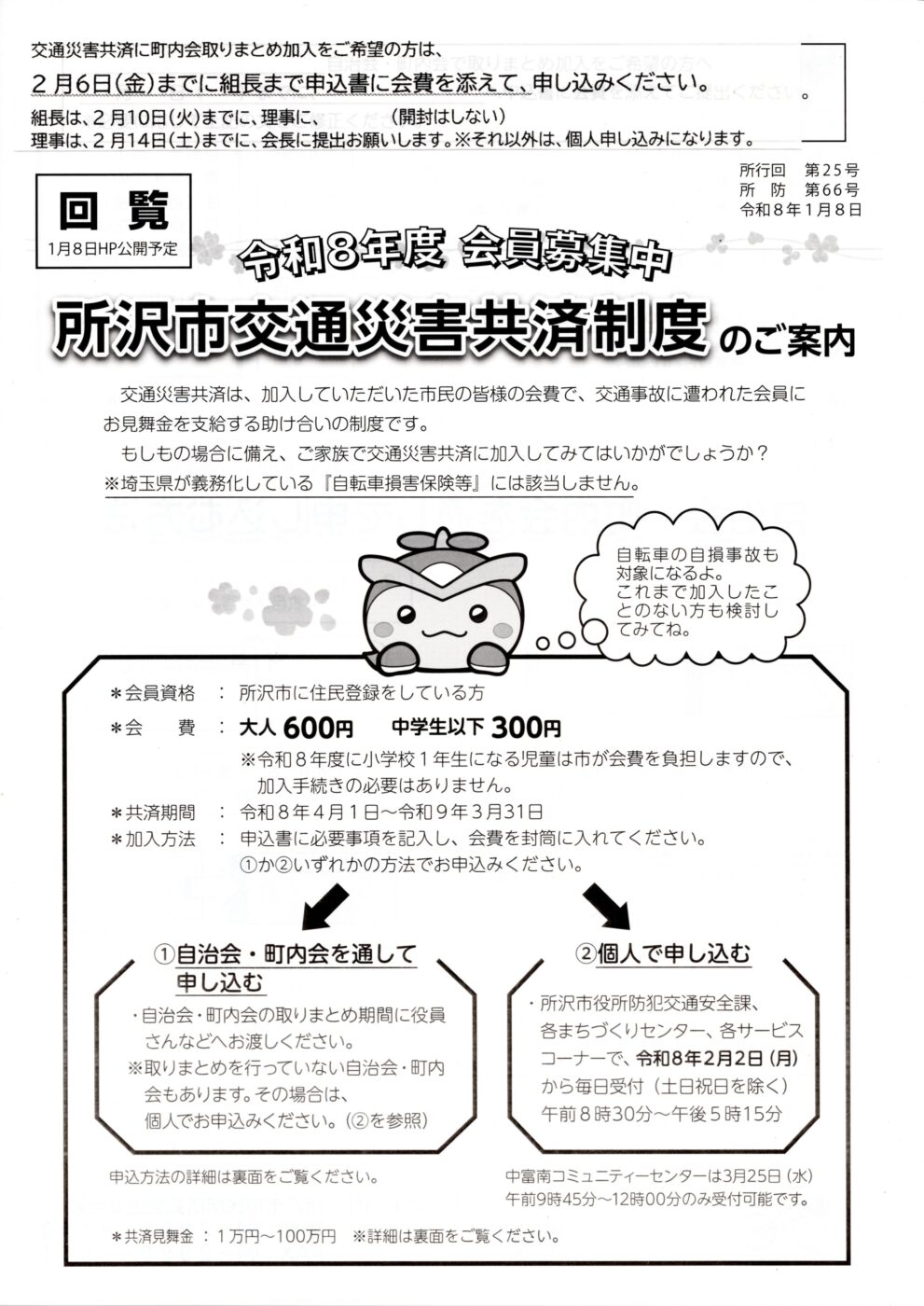 所沢市防犯交通安全課だより『令和8年度 交通災害共済』