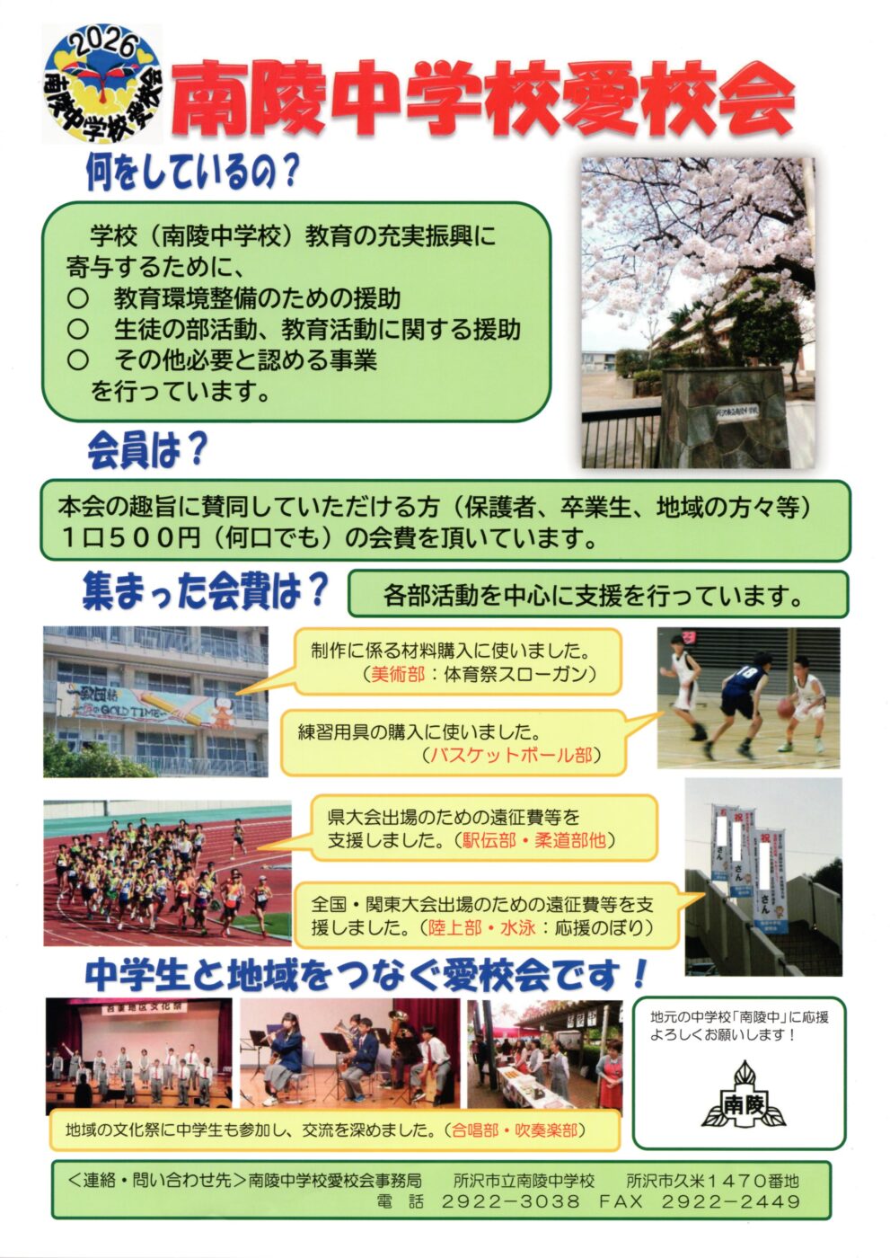 南陵中学校愛好会 令和8年度 会員募集のお願い