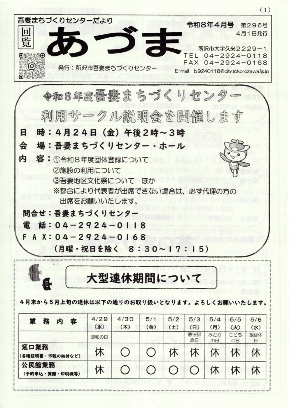 吾妻まちづくりセンター 『あづま』令和8年4月1日号 第296号